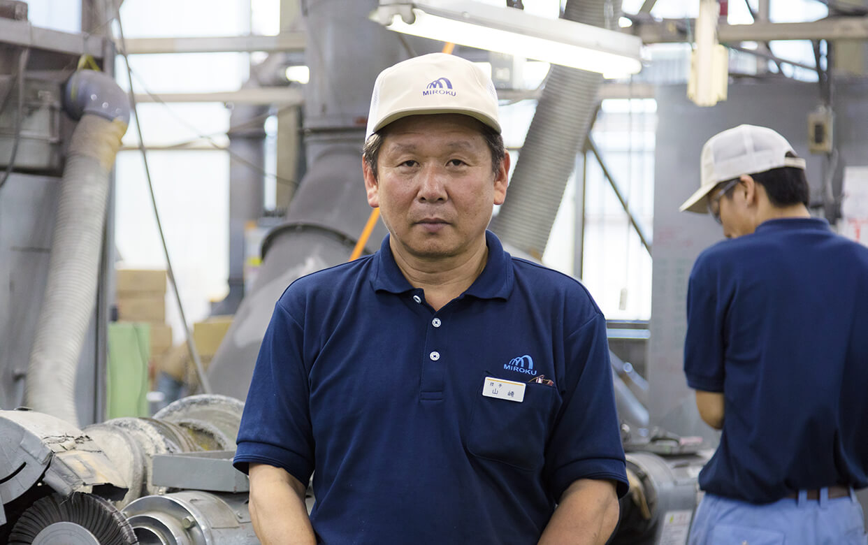 "Everytime an experienced worker retires, I feel training of personnel is my role. I want to hand down Miroku's world highest craftsmanship such as zero-gap fit, which I learned from senior workers, to the future generations."